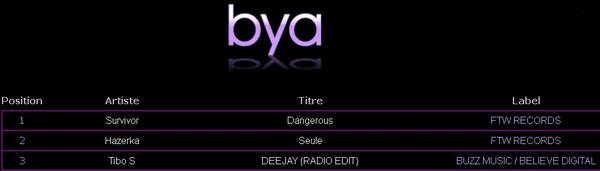 En janvier 2014, le titre SAY YOU'RE MINE signé par le label IM ELECTRONIC se classe numéro 6 dans le top europe par un vote de 150.000 dj's et se classe dans Bya parmi les titres les plus écoutés dans les radio FM de France et dans Musiboxlive le classement officiel des club discothèques et dj's résidents d'europe.